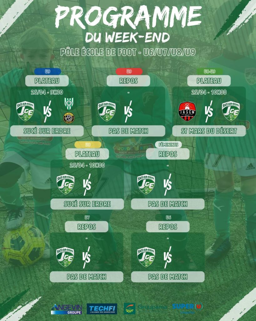 Programmes et Résultats du week-end PÔLE COMPETITION PÔLE FORMATION PÔLE ECOLE DE FOOTBALL PÔLE FOOTBALL DIVERSIFIE