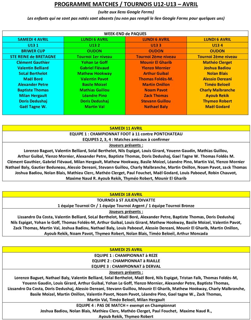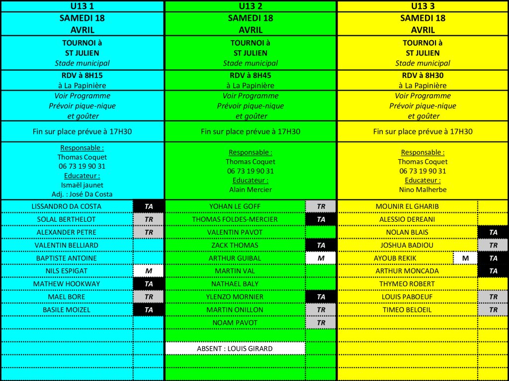 Programme Tournoi St Julien U12-U13 – Samedi 18 avril