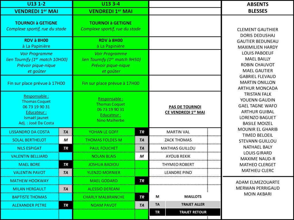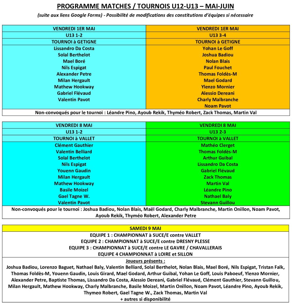Convocations U12-U13